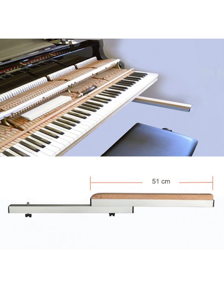 SOPORTE SUSPENDIDO para mecánica de piano de cola, tipo extra largo, en aluminio, (longitud, 51 cm) barra de fijar al soporte del teclado (con compás suministrado) orificio recomendado ø 8 mm