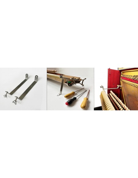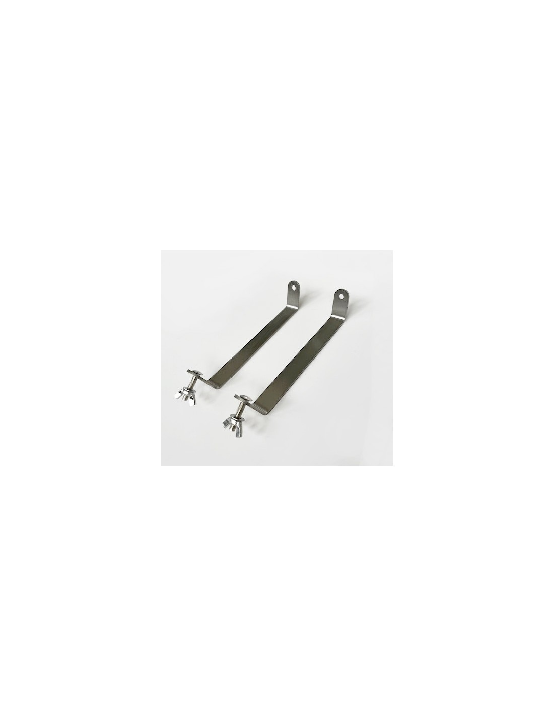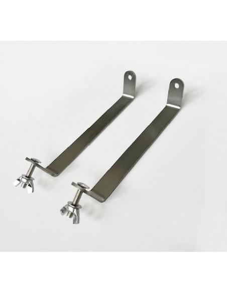 Soportes metálicos (juego de 2 piezas), fijados a tornillos cilíndricos para sujeción mecánica, te permiten trabajar tanto en suspensión como en posición horizontal como soporte