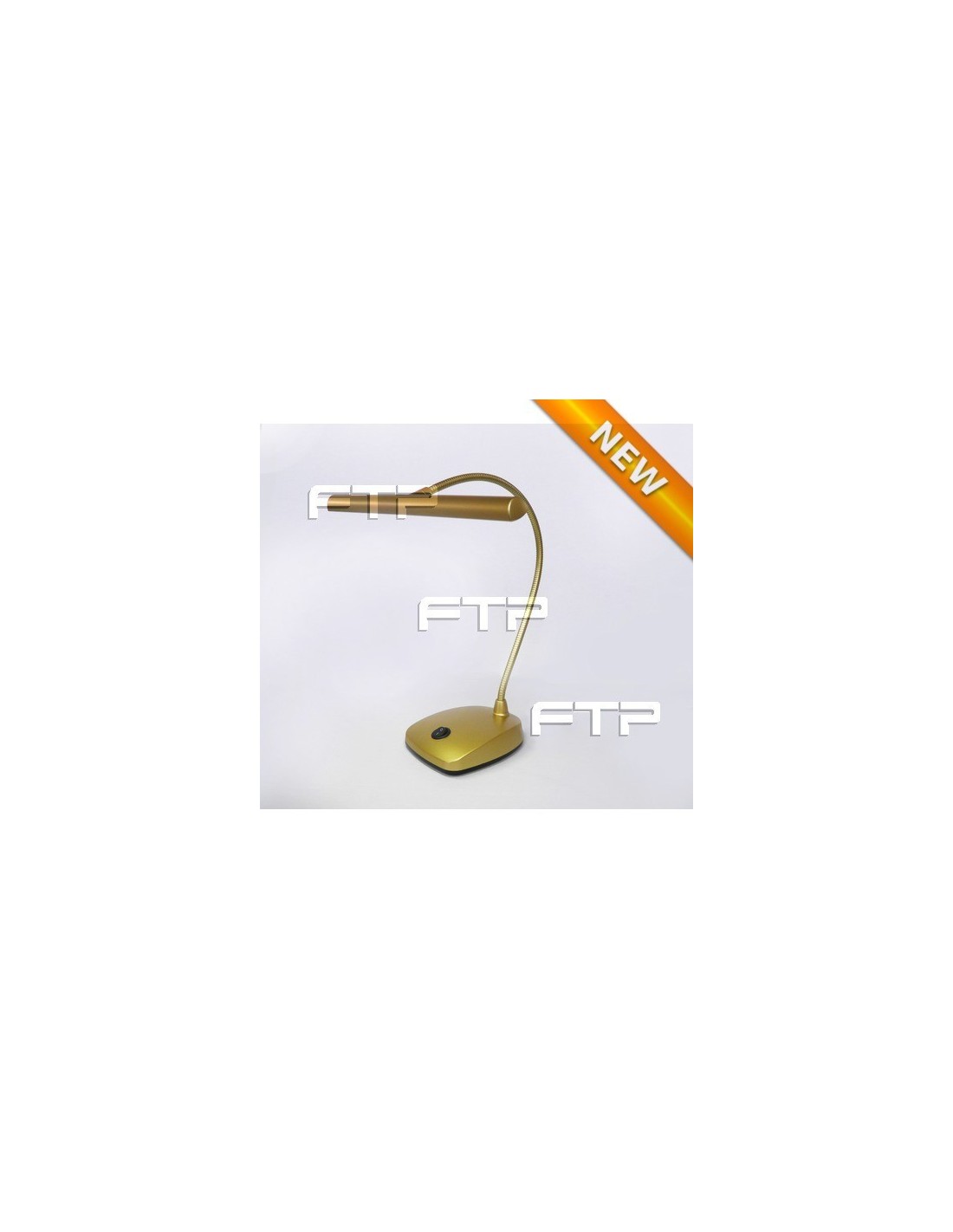 LAMPADA DA TAVOLO a led, elegante moderna, gambo flessibile lung. 41,5 cm - solida base, colore oro satinato ( luminosità 12 led, 2500 Lux ) incluso alimentatore