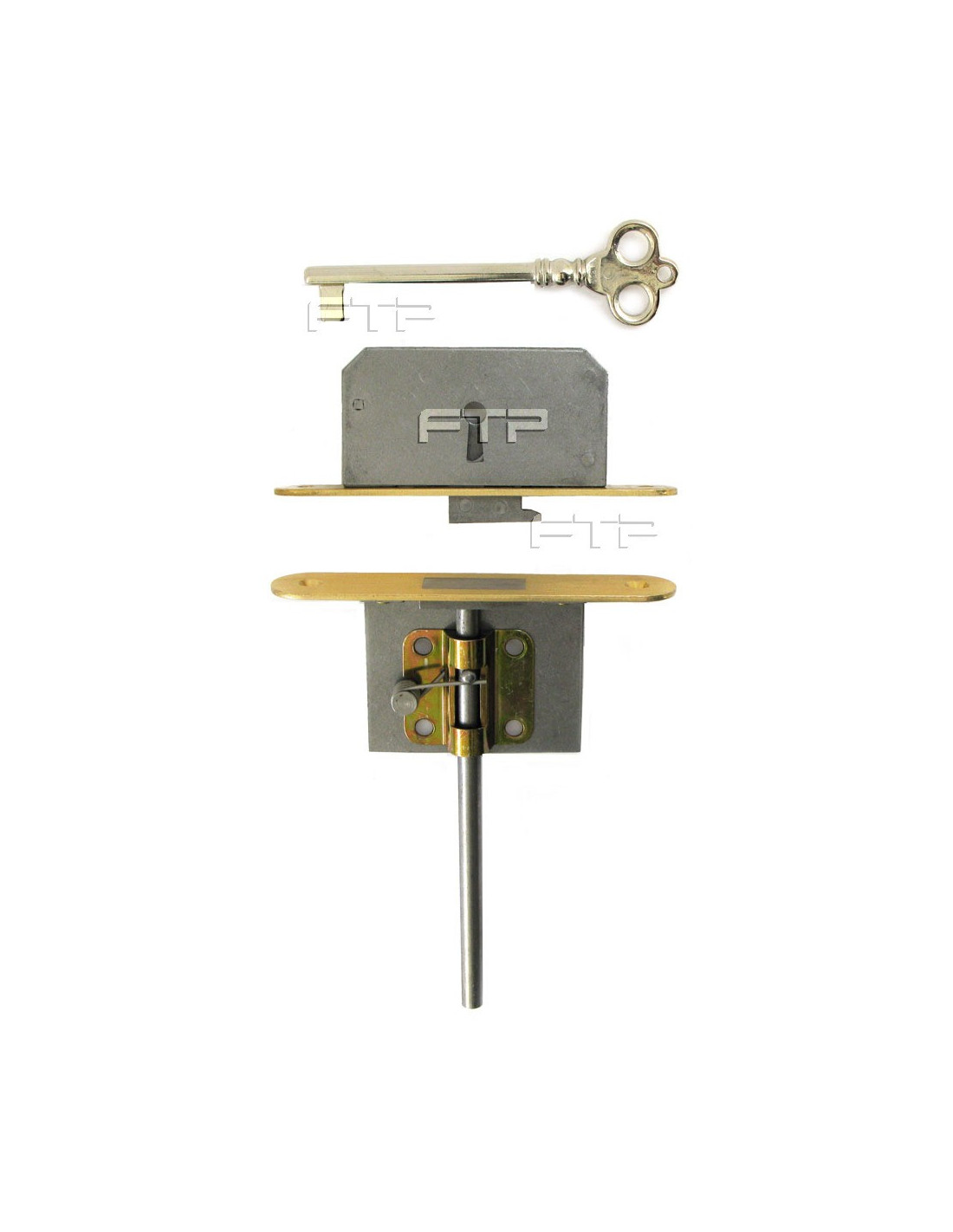 SERRATURA DOPPIA per pianoforte a coda, con chiave nichelata lucida, in dotazione, placca inferiore e superiore, in ottone, arrotondate