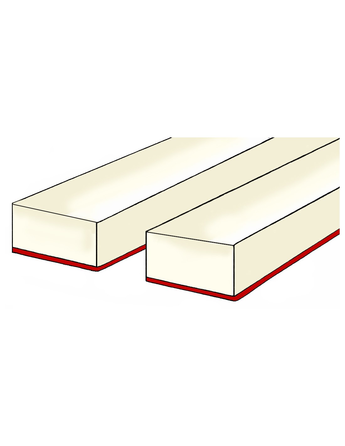 STRISCE in FELTRO per SMORZATORI, ACUTI CODA con sottofeltro rosso (senza trapuntato) lung. 46 cm alt 10 mm