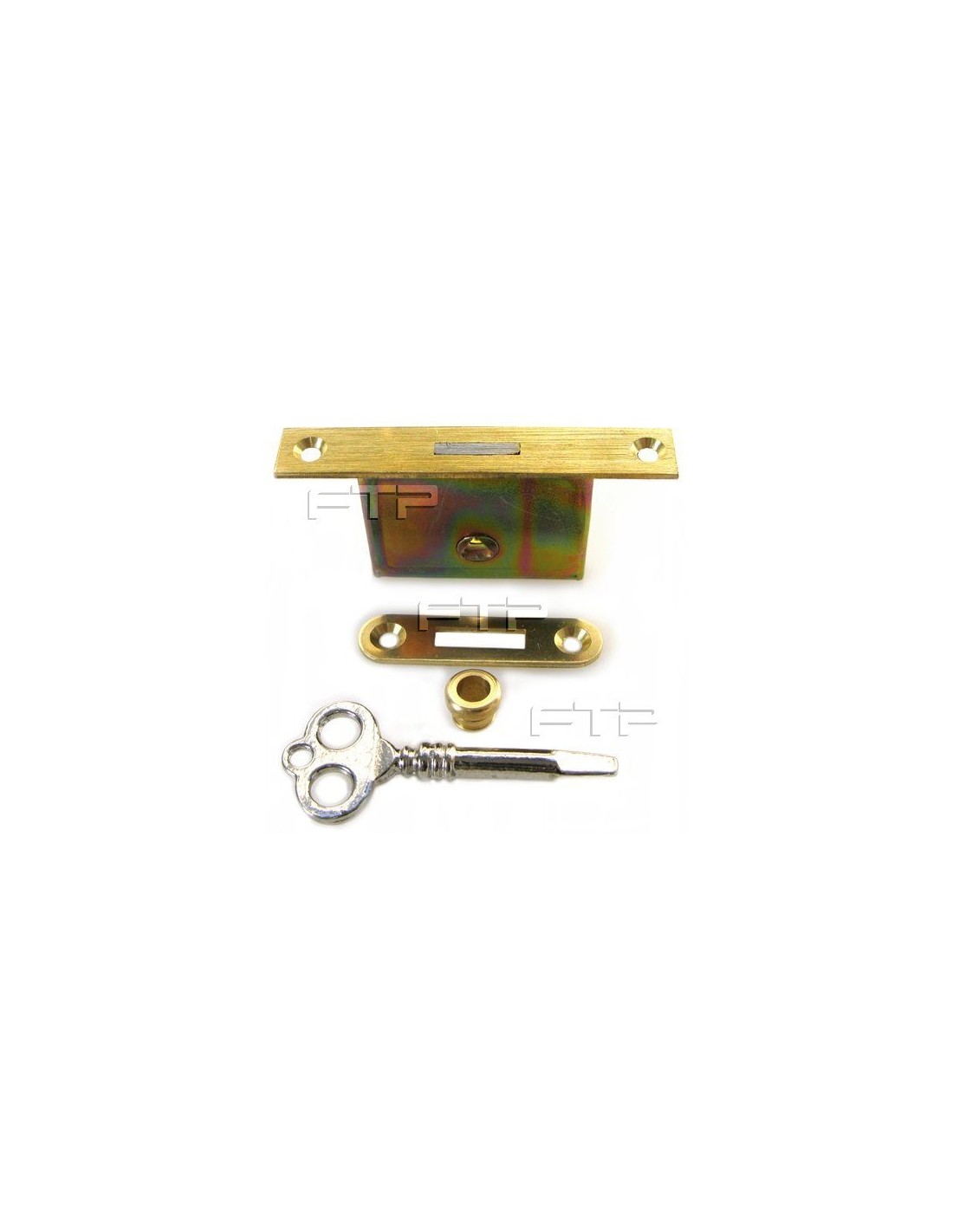 SERRATURA per harmonium, con imboccatura triangolare parte superiore in ottone, arrotondata, con controserratura e chiave